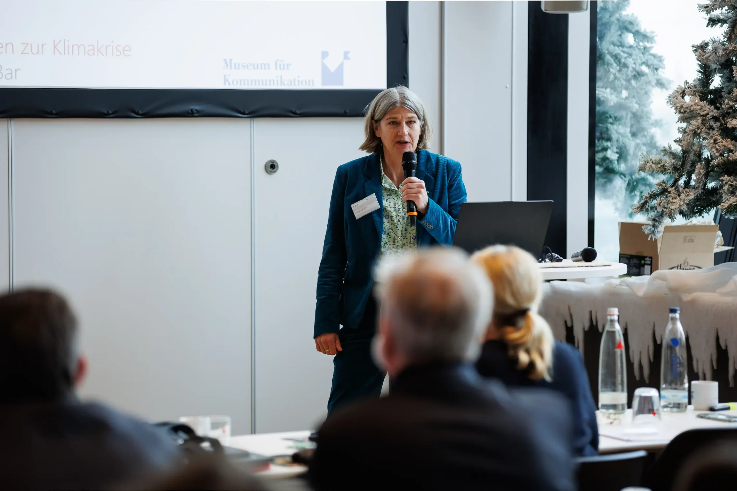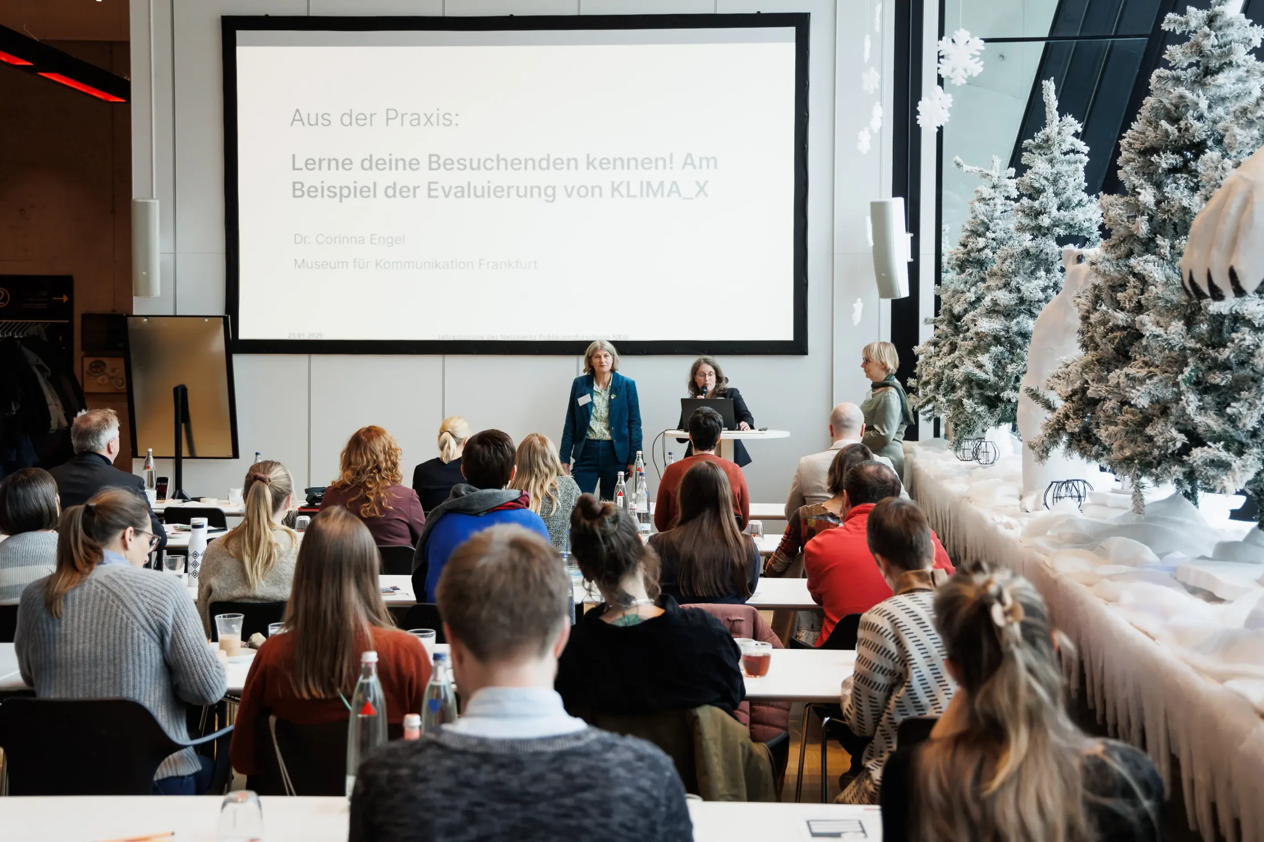 Ob eine Ausstellung auch zu längerfristigen Änderungen im Handeln führen kann, hat das Museum für Kommunikation in Frankfurt untersucht. Dr. Corinna Engel (Leiterin der Öffentlichkeitsarbeit) präsentierte vor der Halbzeitpause ihre Erkenntnisse aus den Befragungen der Wanderausstellung Klima_X. Kann eine Ausstellung überhaupt dazu beitragen, dass Handeln verändert wird? Die Studie kommt zu dem Ergebnis: Ja, mehr als die Hälfte der Befragten der Follow-Up-Befragung gaben an, dass der Besuch der Ausstellung sie sehr stark oder stark zum Handeln angeregt hätte.