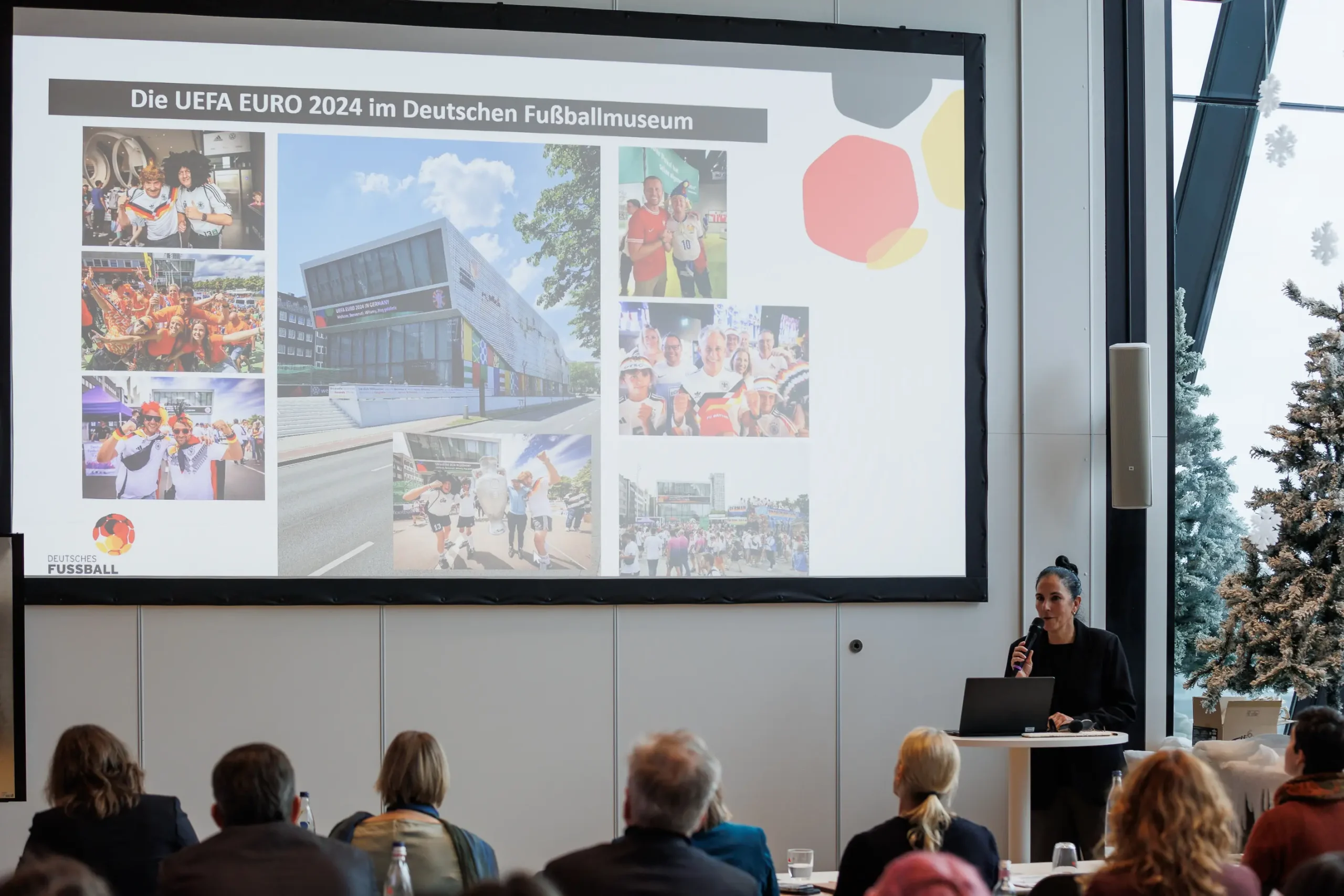 Dortmund war im Jahre 2024 einer der Austragungsorte für die Fußball-Europameisterschaft. Dunja Achy vom Deutschen Fußballmuseum zeigte die Nach-Wirkungen dieser Zeit auf: Besondere Aktionen wie das improvisierte Begleiten eines Live-Spiels durch die Dortmunder Philharmoniker:innen zogen viel neues Publikum an, erforderten aber auch große personelle und zeitliche Ressourcen. Das Museum konnte jedoch einen satten Zuwachs an Besuchenden vor Ort im Museum und auf Instagram verzeichnen.